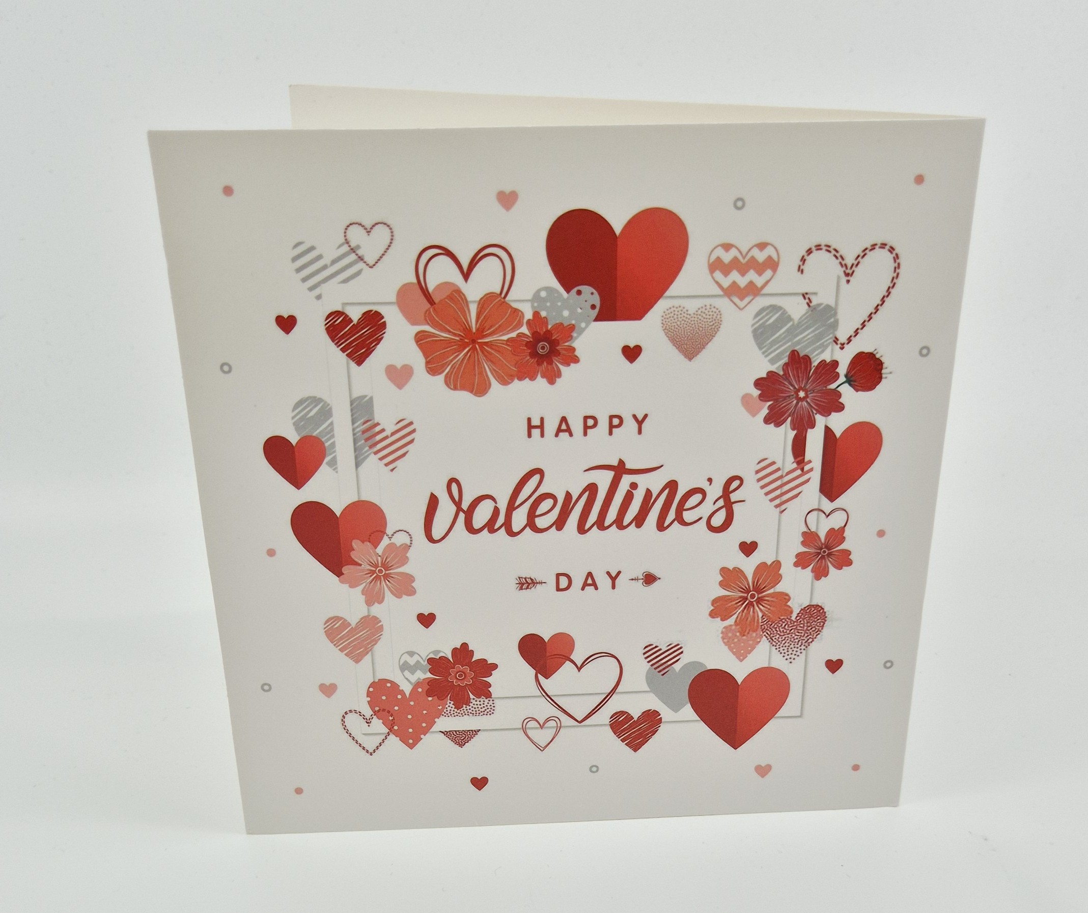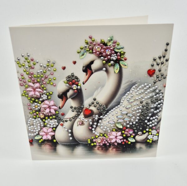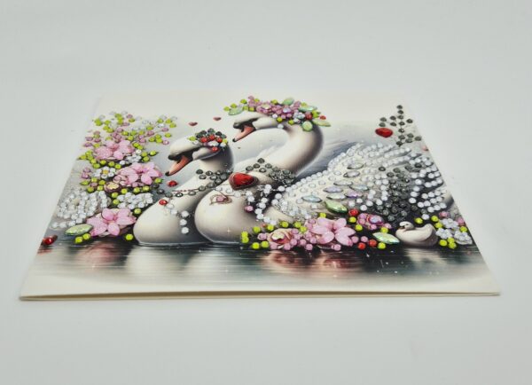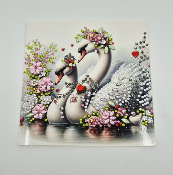 Quadratische Doppelkarte zum Valentinstag oder zur Hochzeit, gestaltet von Tina mit der Diamant-Painting-Technik.